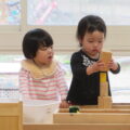活動を始めたばかりの子の完成品を見た周りの子どもたちからは、「わあ!すごい」「きれい!」「やってみたい!」という声が上がり、わくわくした気持ちが広がっていくのが伝わってきました。