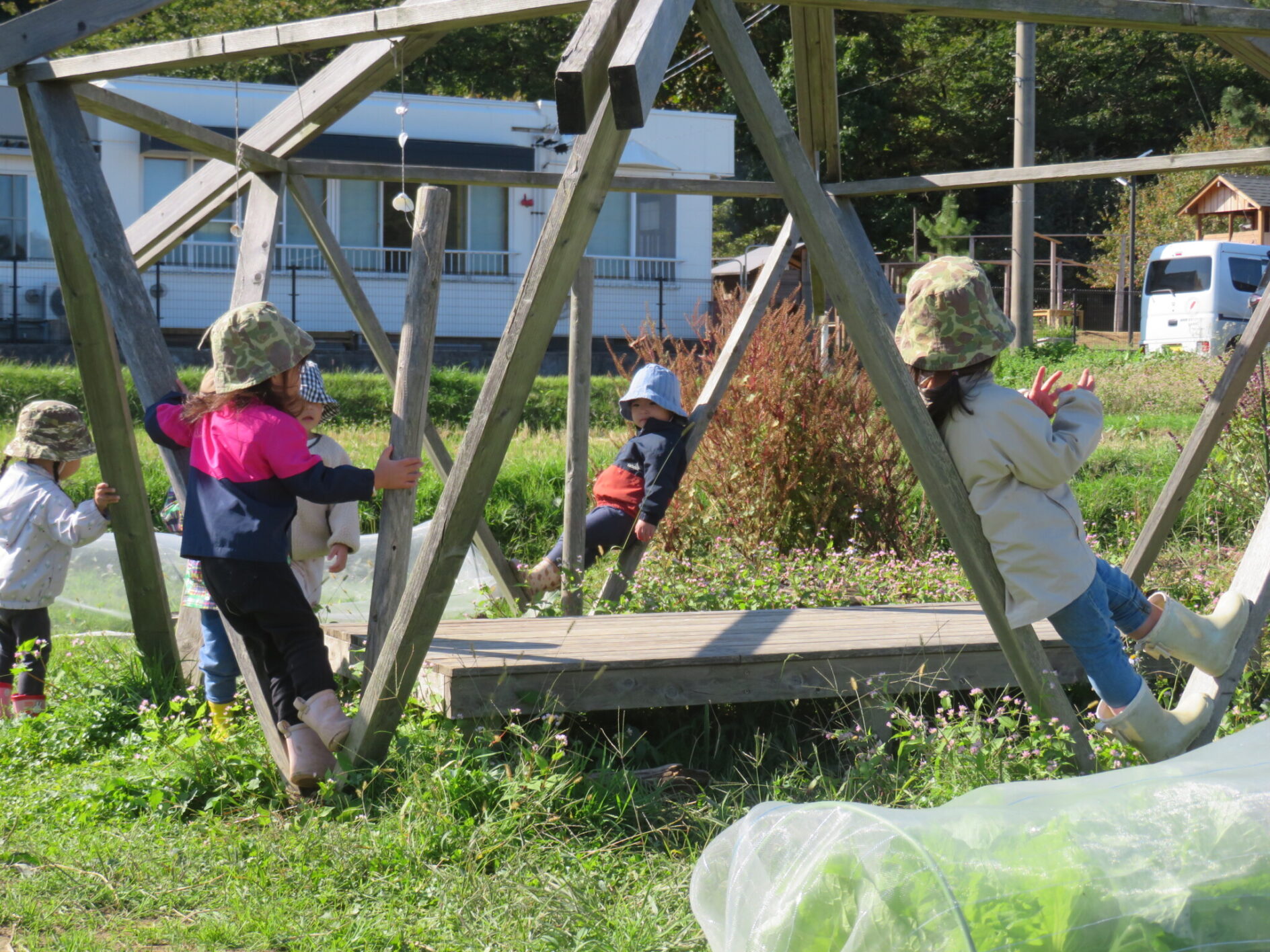 抜いた大根を見ているのかと思ったのですが、土から少し出ている大根を見て、「抜いた」「出てる」という表現になったのだなとおもしろいな~と思って子どもたちの会話を聞いていました。
