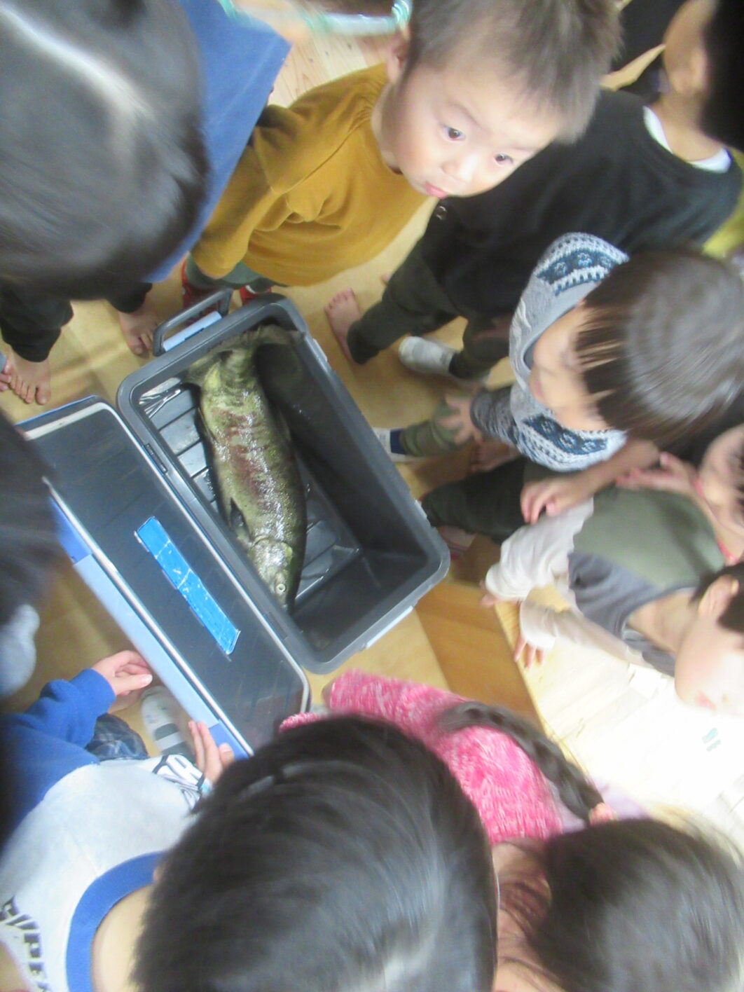 クーラーボックスにぎゅうぎゅうに入っていた大きな鮭でした。