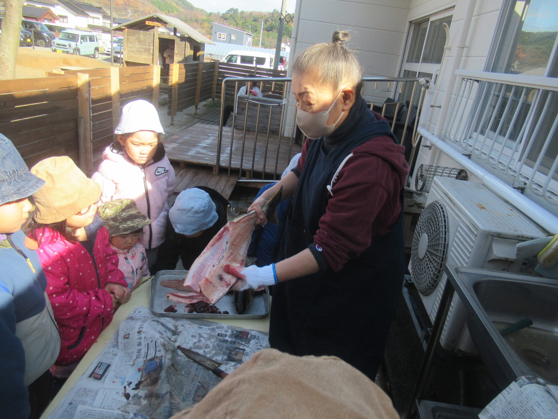 切り開かれていくおさかなを真剣な顔で見ていました。
