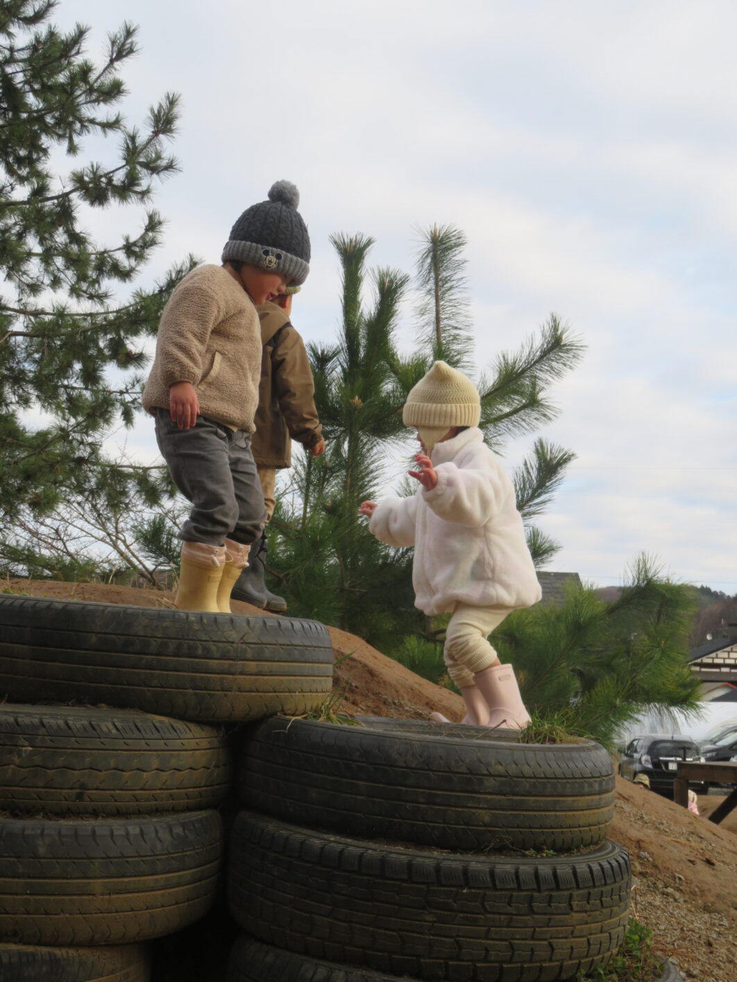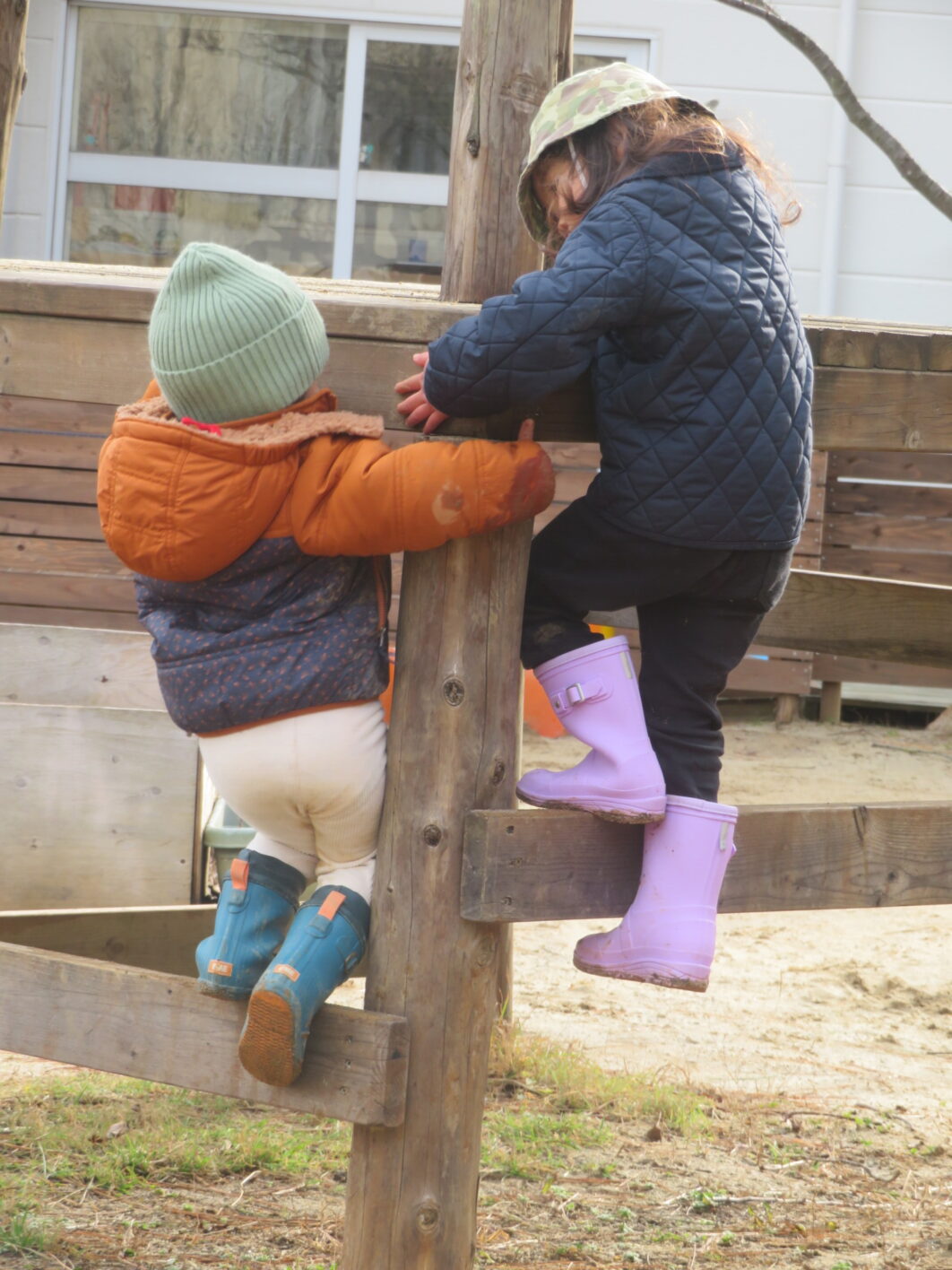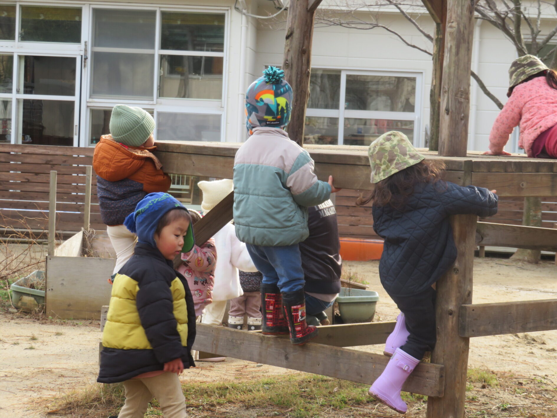 空気が冷たいですが、子どもたちは元気に外遊びをしています。