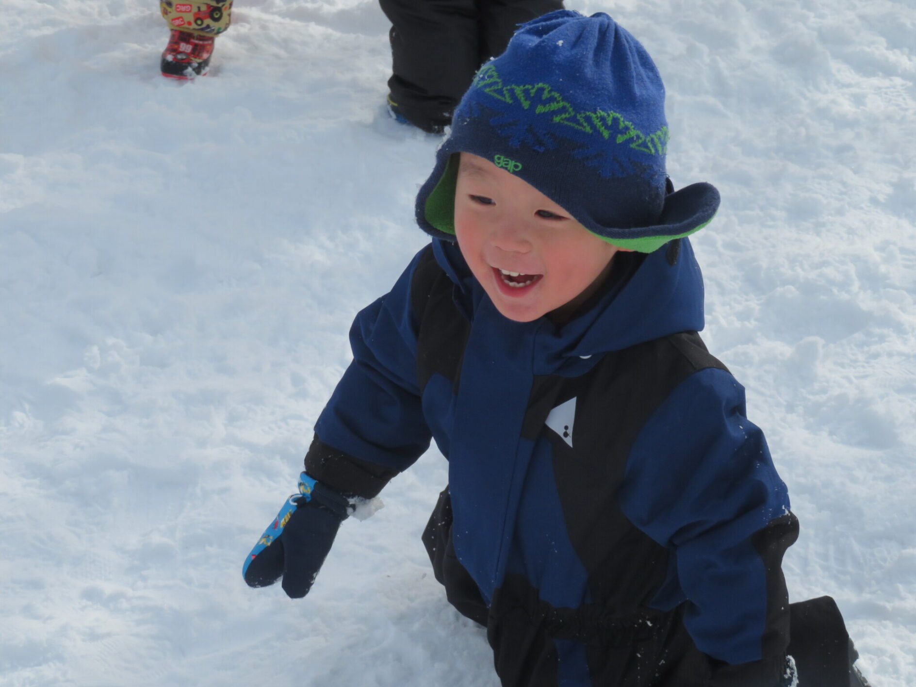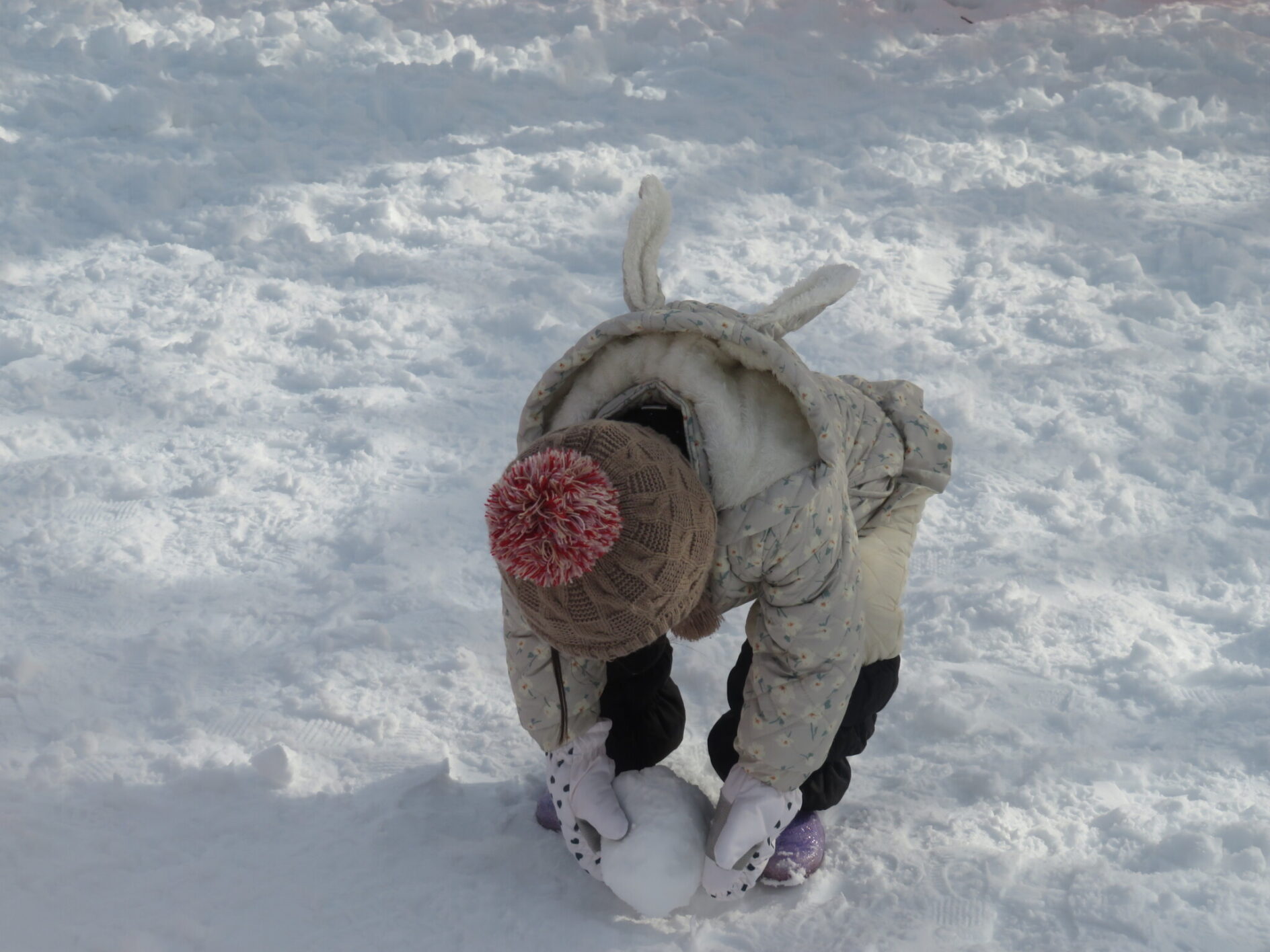 年長さんの作った雪だるまに興味を示して触ったら・・・