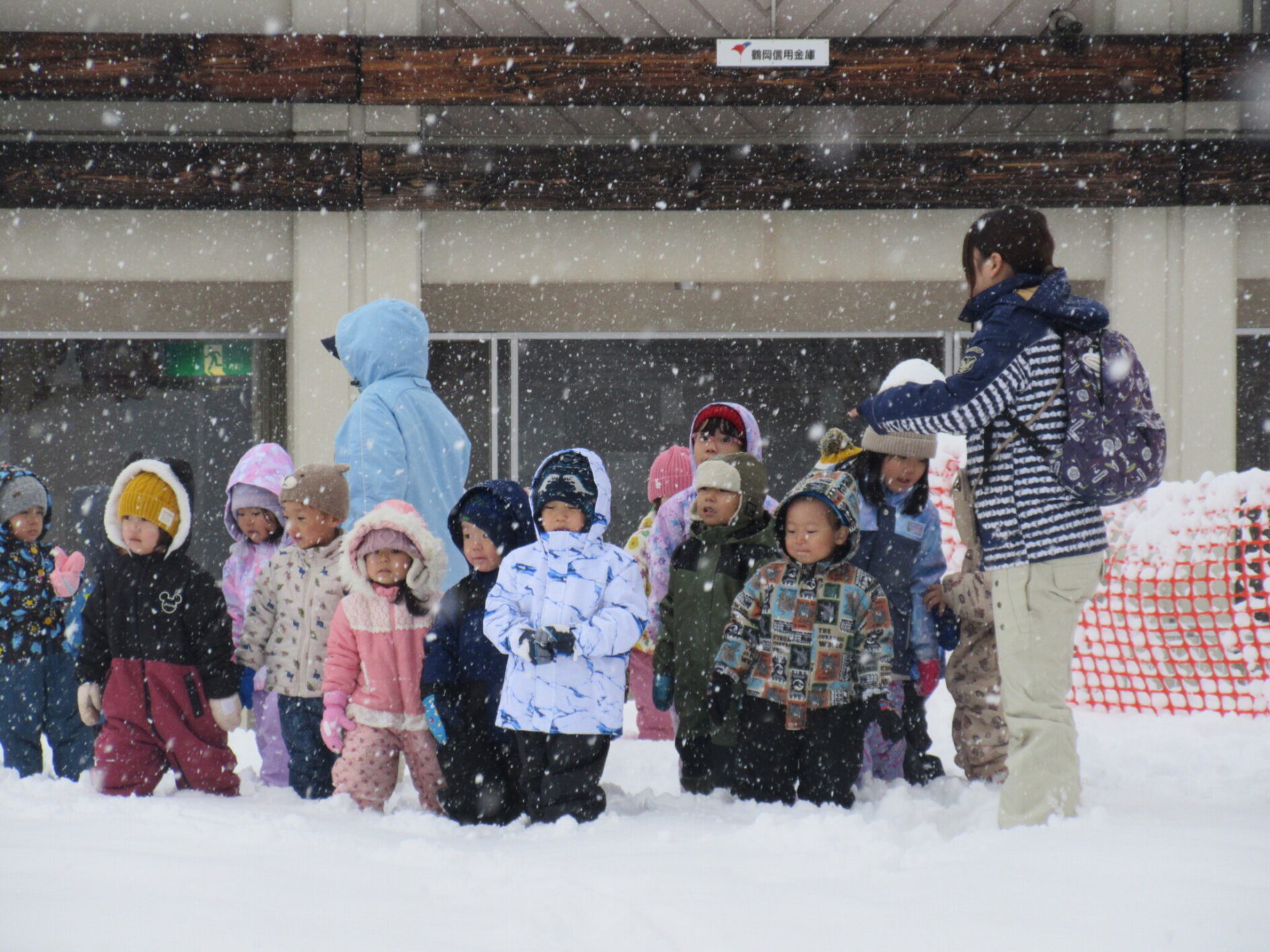 バスの中では「もう全部白いよ!」「ほんとだ!あっちまでずーっと白いね!」と、窓の外の景色にくぎづけの子どもたちでした。