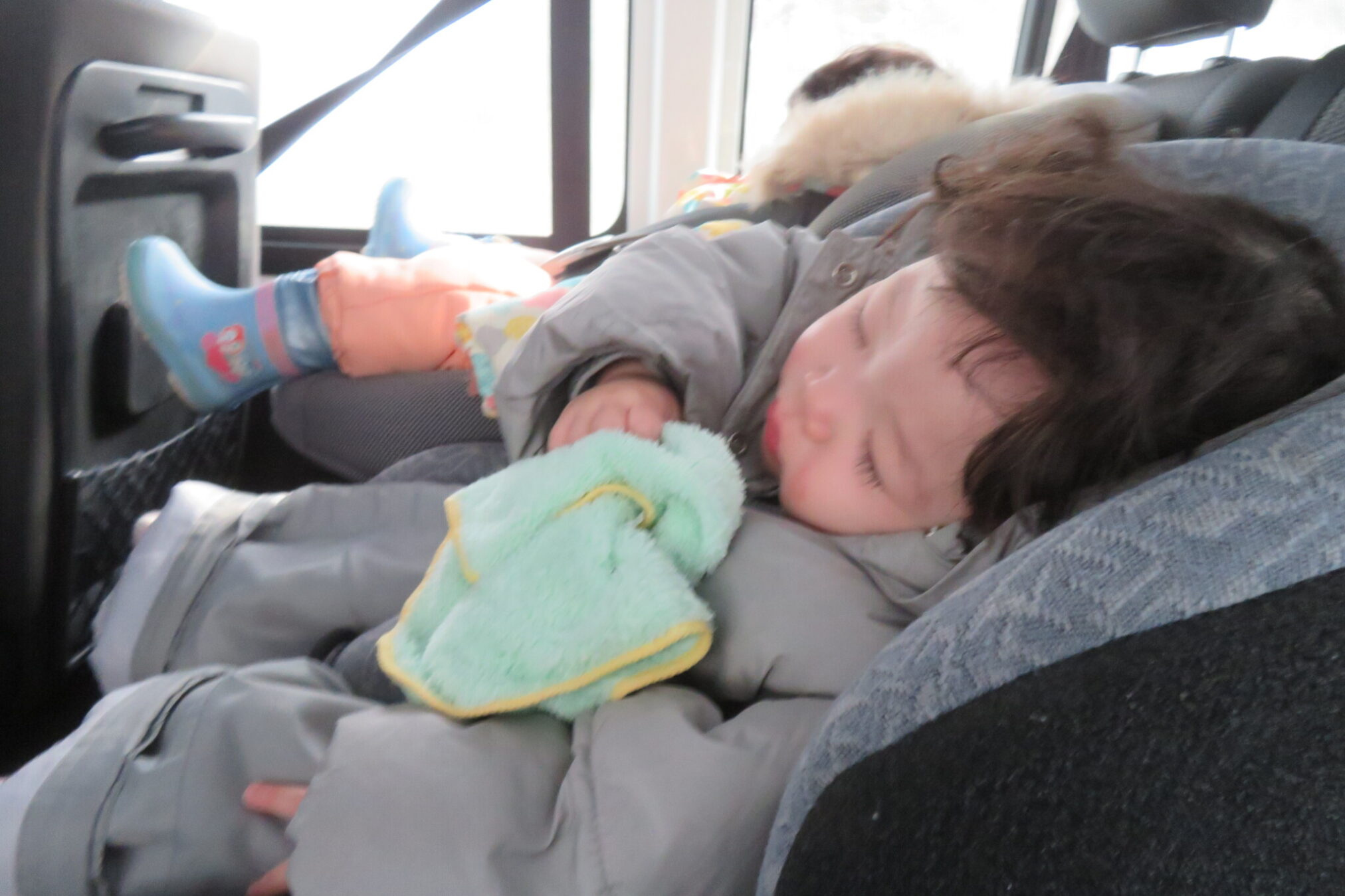 寝てしまう子どもたち。雪は見れないかな?と思いました。
