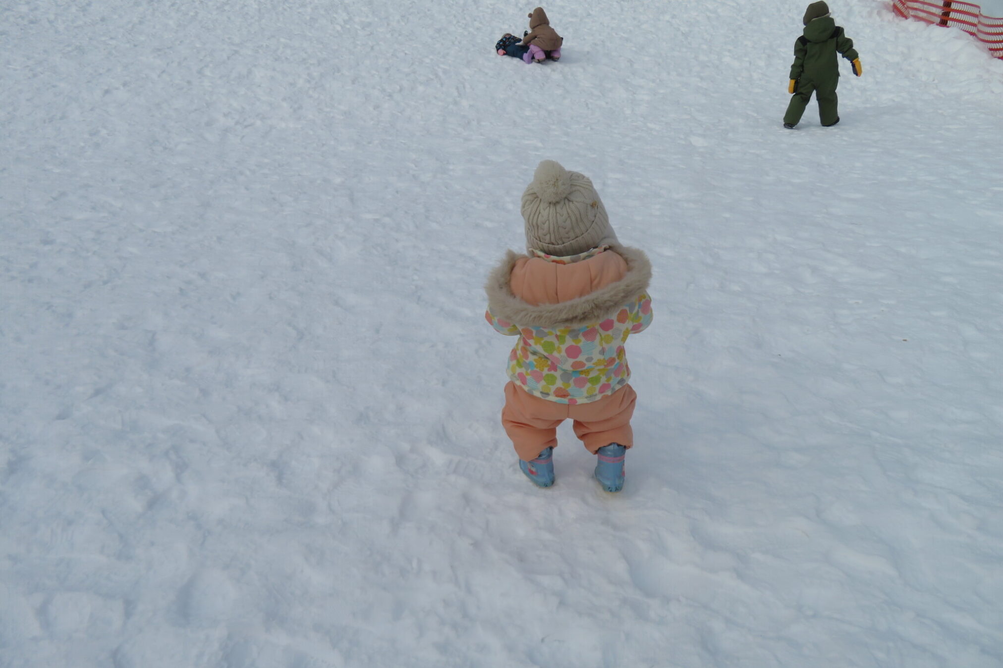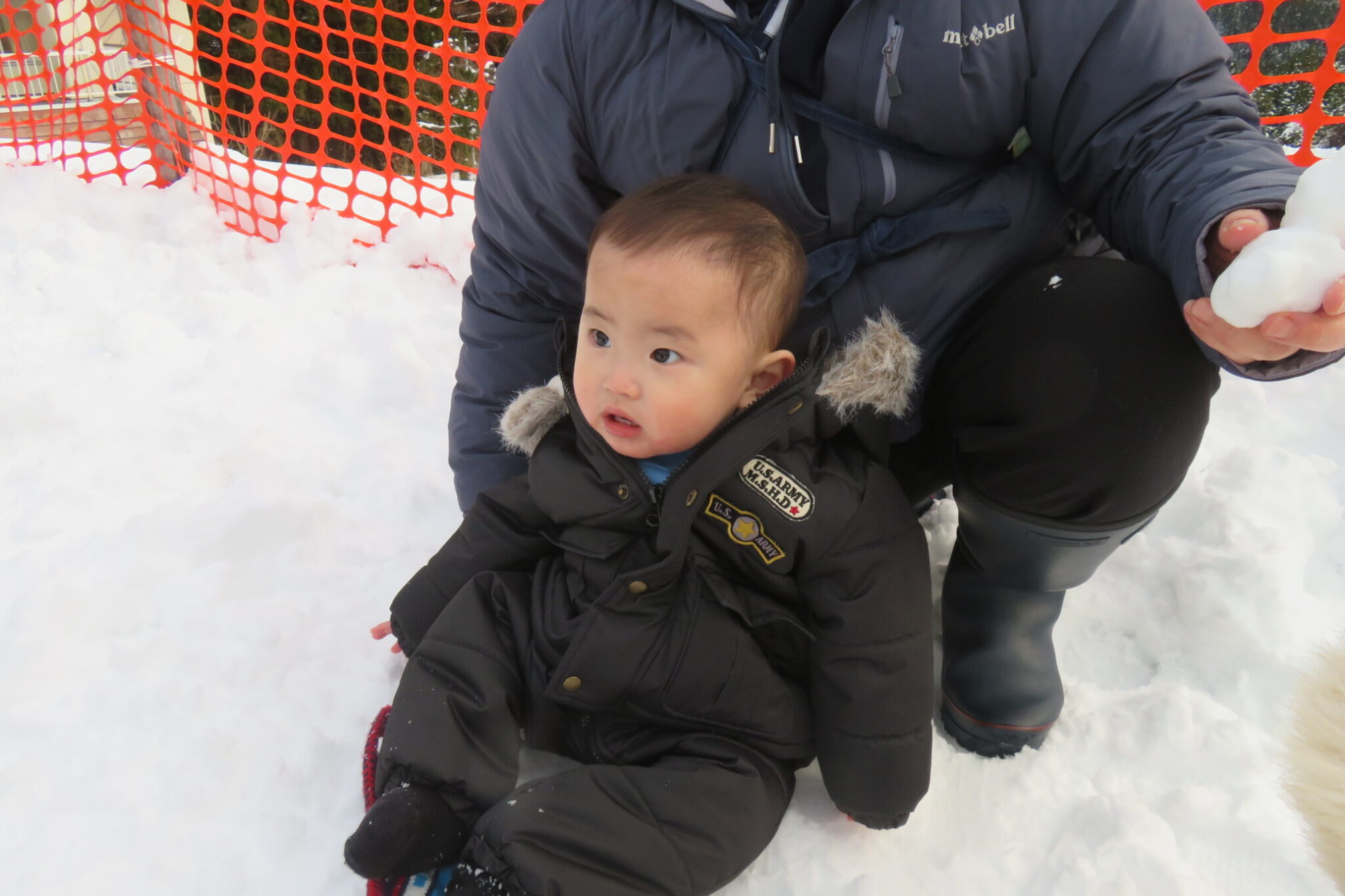 また、雪の上に座って大きい子の遊びを見たり冷たさを感じたり