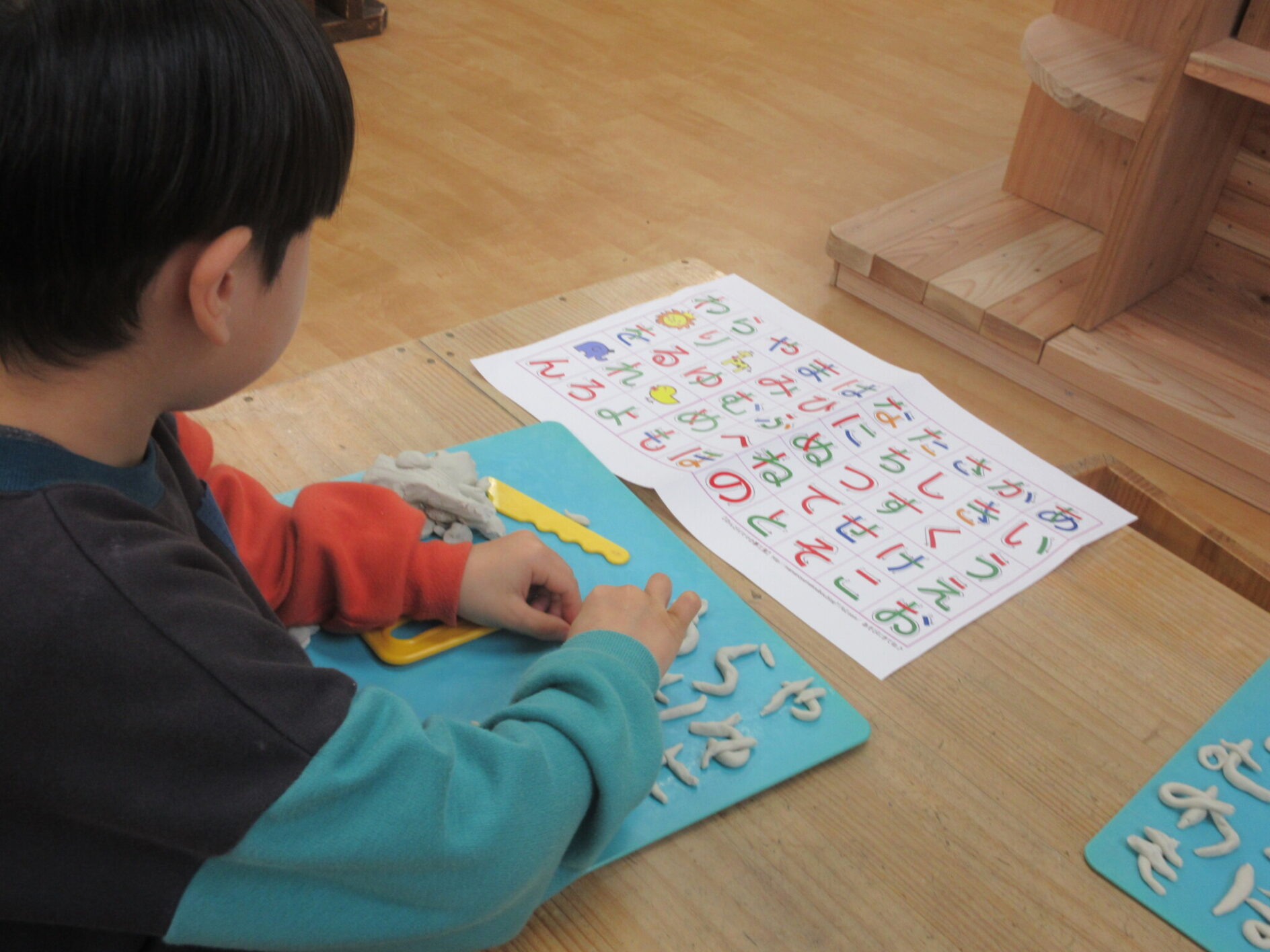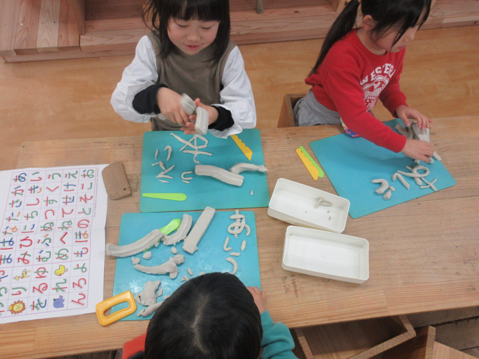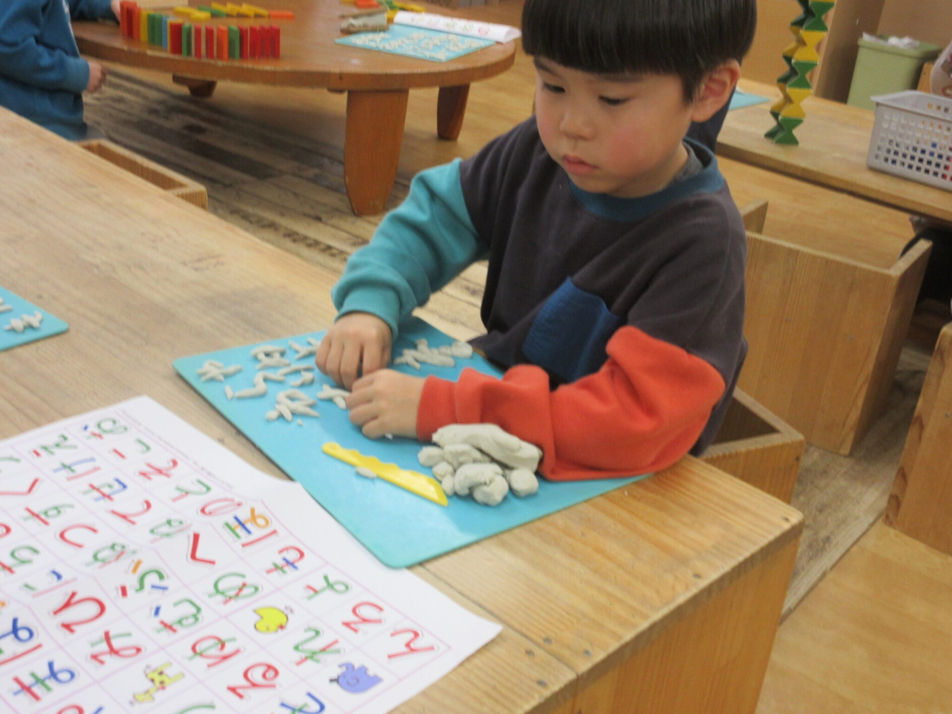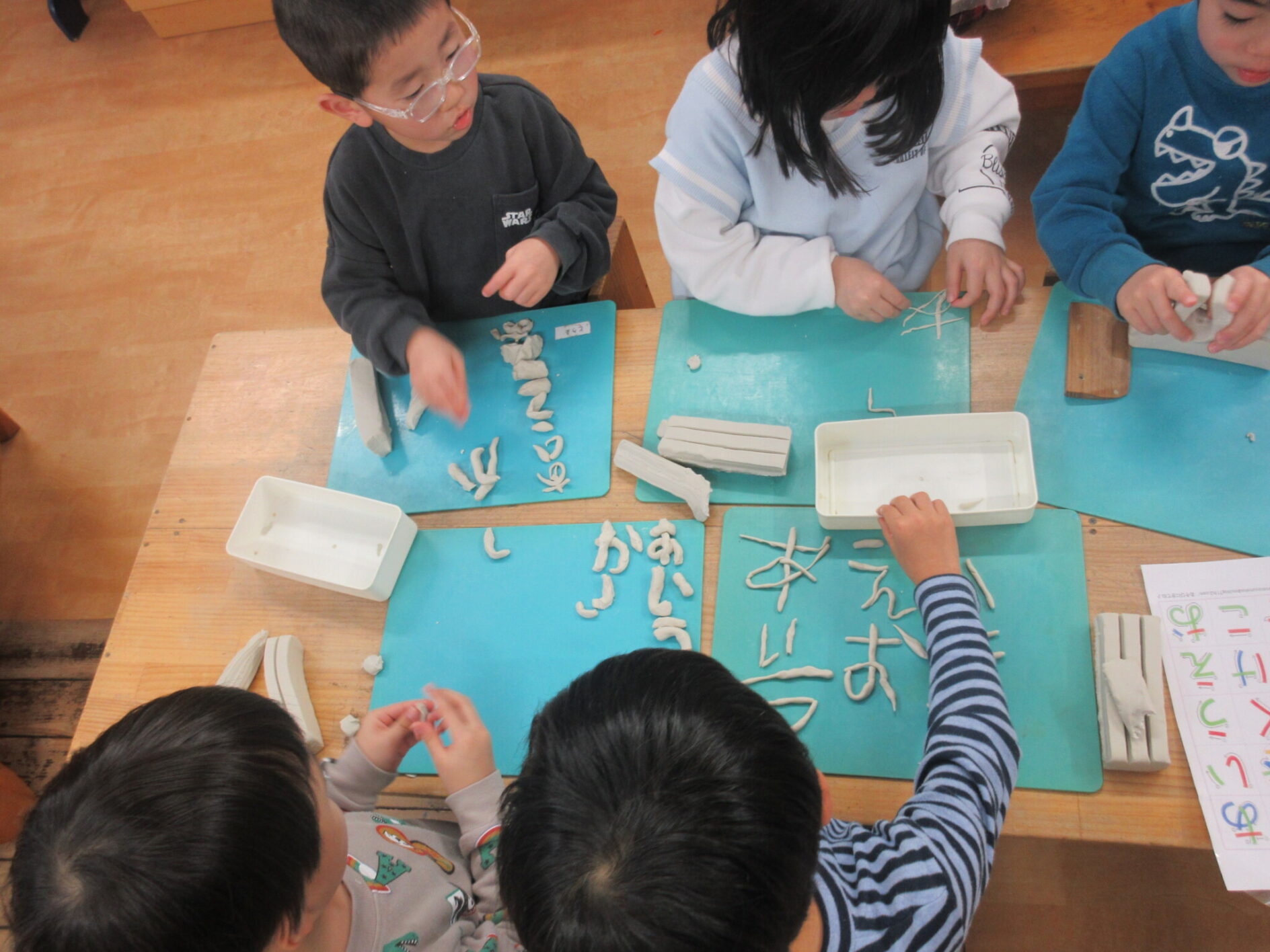 あいうえお表と粘土を見比べながら、手を動かし続ける姿が印象的でした。