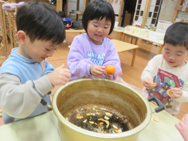 近くを通った子や周りの子も「いいにおい」と気づいていました。