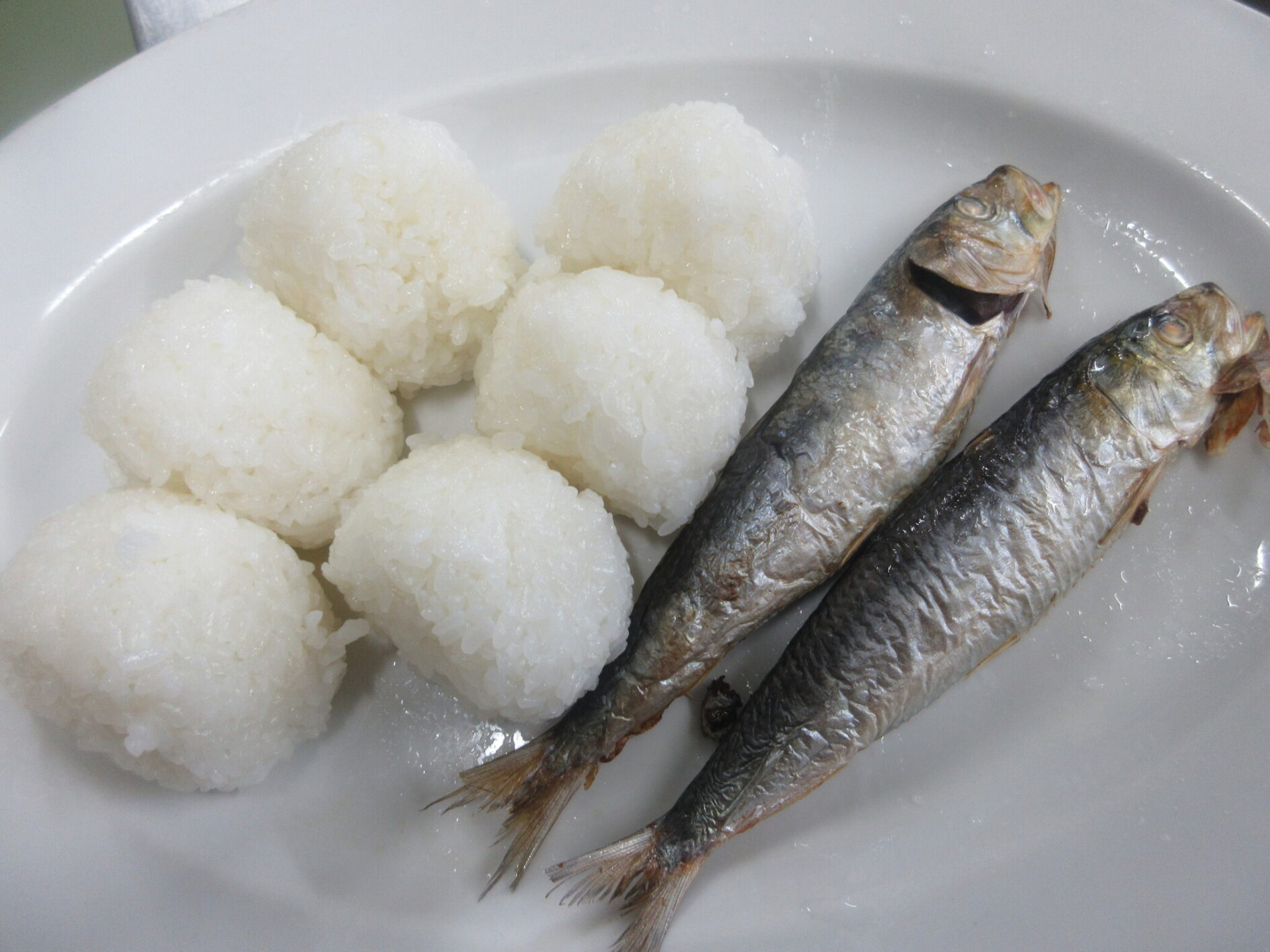 また、おやつではイワシを焼いておにぎりと一緒に食べました。
