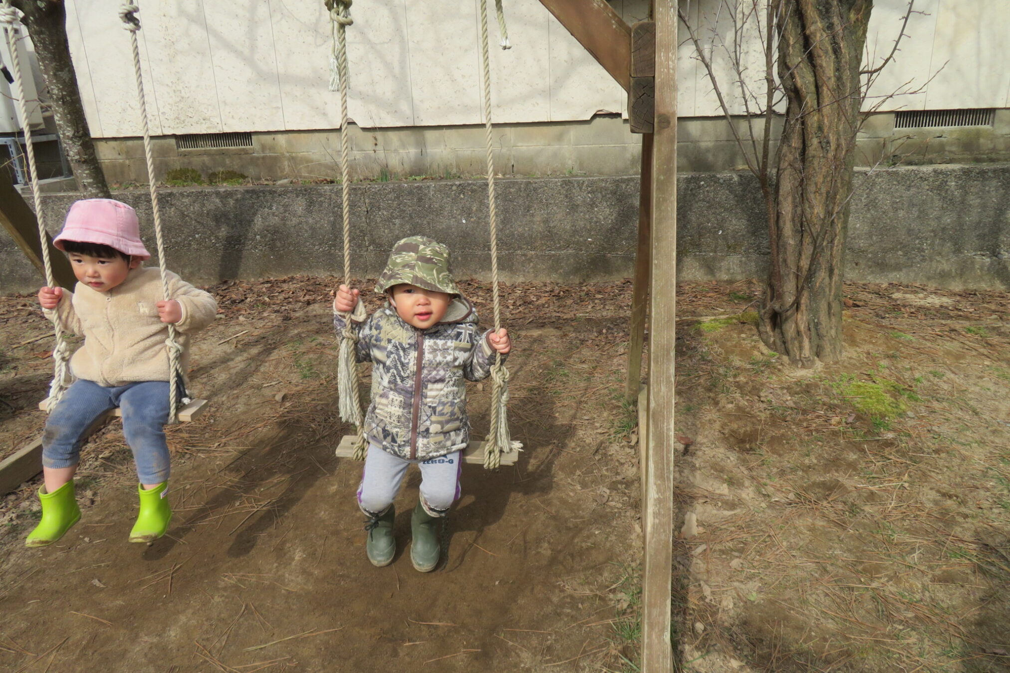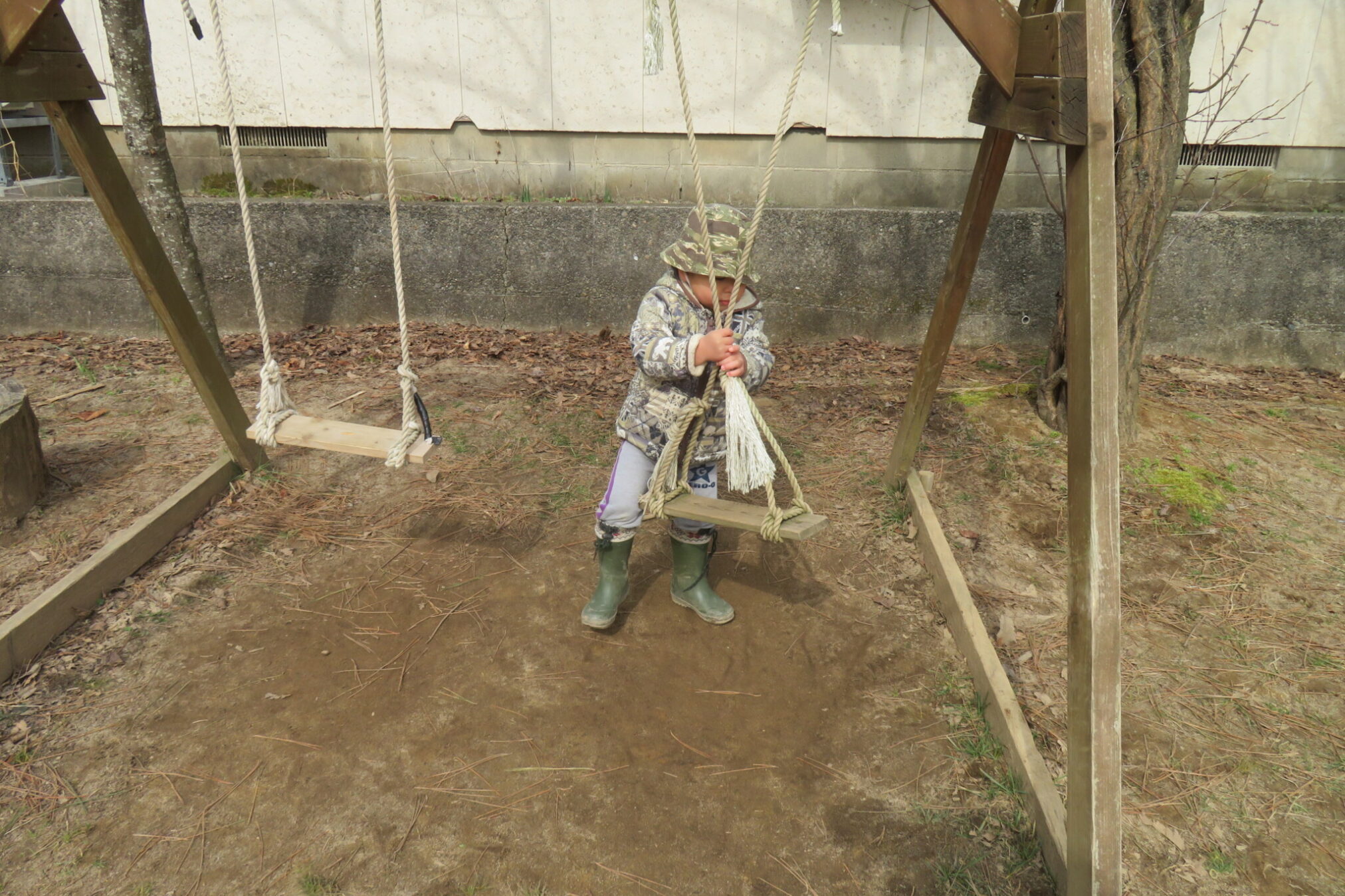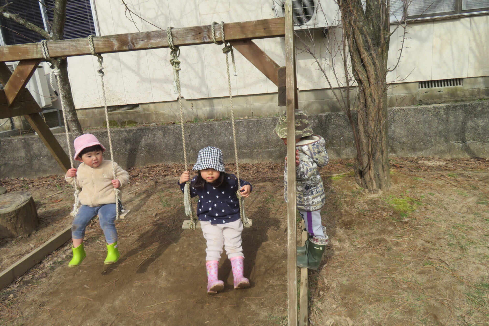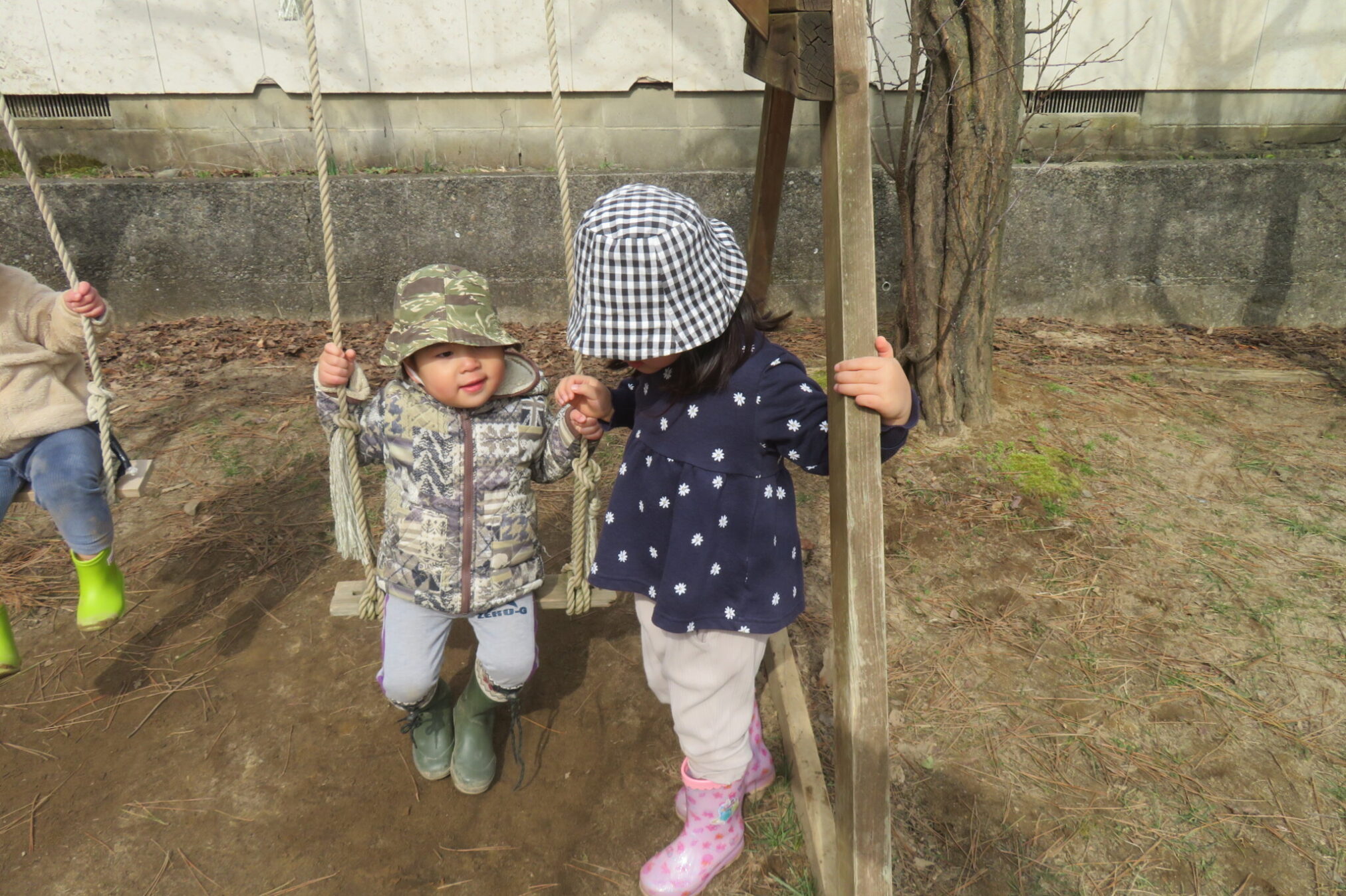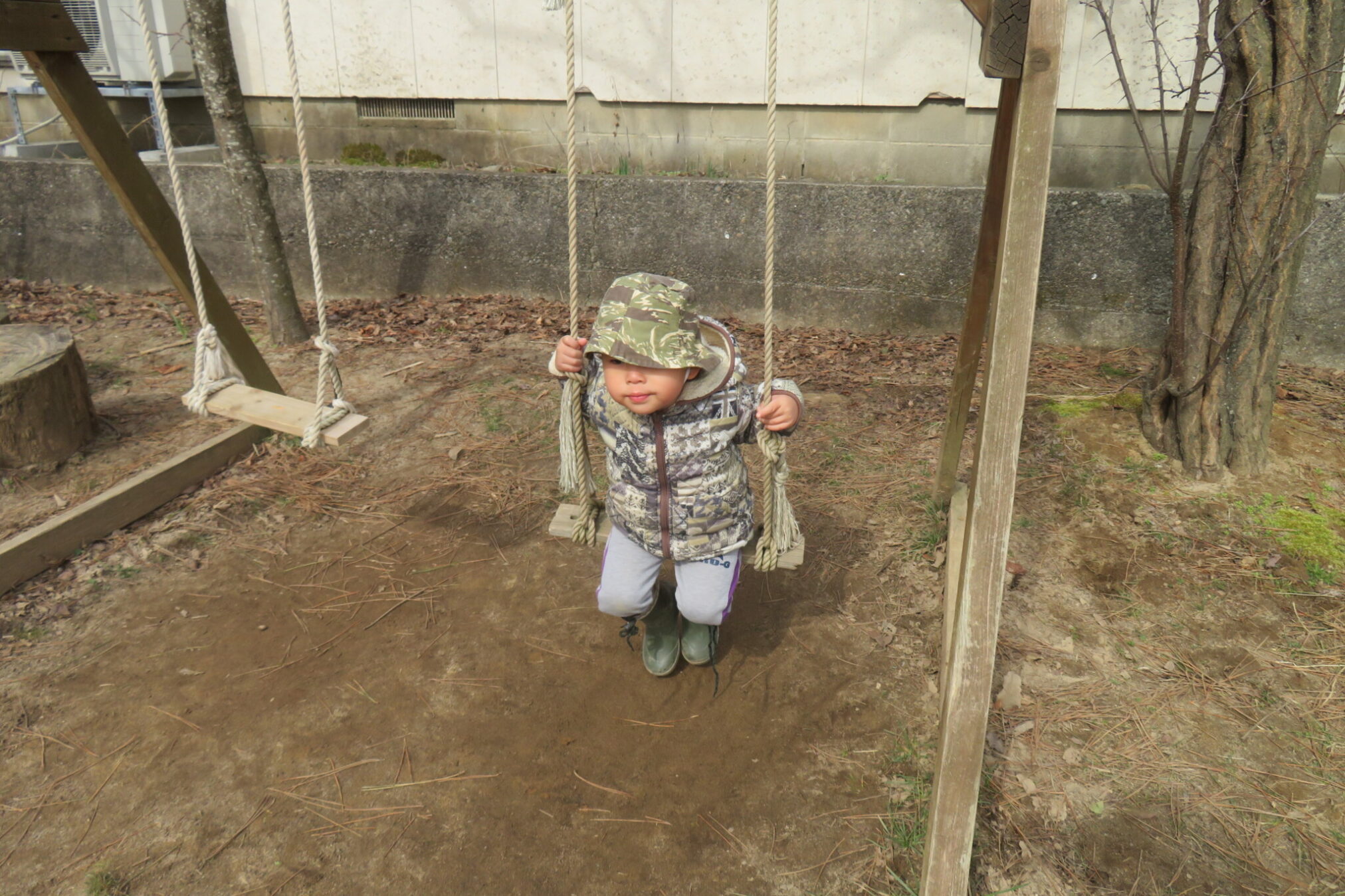 一人のおともだちが離れ時、すっとブランコに座ってみました。